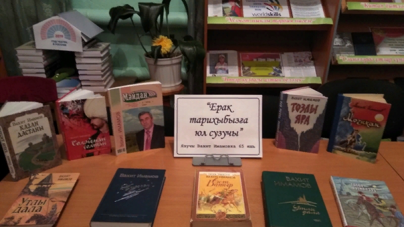 Күргәзмәдә авторның төрле елларда дөнья күргән «Могикан», «Сәет Батыр», «Утлы дала», "Сөләйман солтан" һ.б. китаплары, автор турында «Мәйдан” журналында басылып чыккан мәкаләләр урын алды.
