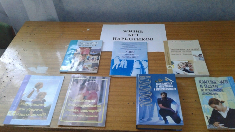 Экспозициядә наркоманияне кисәтүгә караган, наркотиклар куллану белән бәйле җинаятьчелеккә каршы көрәштә хокукый җәһәтләрне тасвирлаган, сәламәт яшәү рәвеше тәрбияләү буенча киңәшләр туплаган китаплар, шулай ук әфьюнчыларның аяныч язмышын яктырткан матур әдәбият әсәрләре дә урын алды.