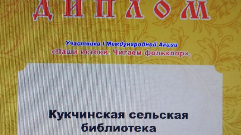Яшь буында татар халкының мәдәниятенә хөрмәт тәрбияләү һәм аның фольклорын популярлаштыру максатыннан, Күкчә авылы китапханәсе « Наши истоки. Читаем фольклор» Бөтенроссия акциясендә катнаштып, диплом белән бүләкләнде.