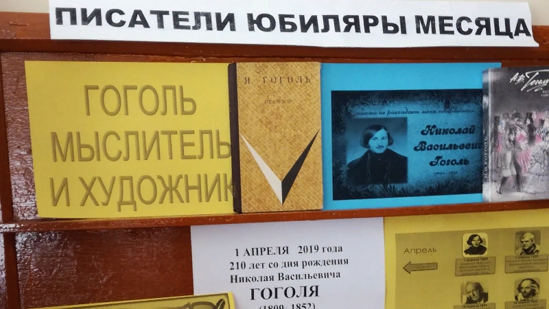 Ачы авыл китапханәсендә язучының юбилее уңаеннан "Юбиляр ай язучылары" исемле даими эшли торган китап күргәзмәсе рубрикасында укучыларыбыз өчен "Гоголь фикер йөртүче һәм рәссам" дип исемләнгән күргәзмә оештырылды, тәкъдим итү әңгәмәсе, китап күргәзмәсенә күзәтү үткәрелде.