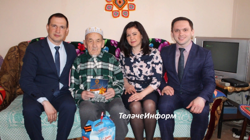 Бу якынлашып килүче зур бәйрәм белән аларны Татарстан Республикасы Президенты Рөстәм Миңнеханов, Теләче муниципаль районы башлыгы Ильдус Зарипов исеменнән котладылар, котлау открыткалары һәм кучтәнәч тутырылган пакет тапшырдылар.