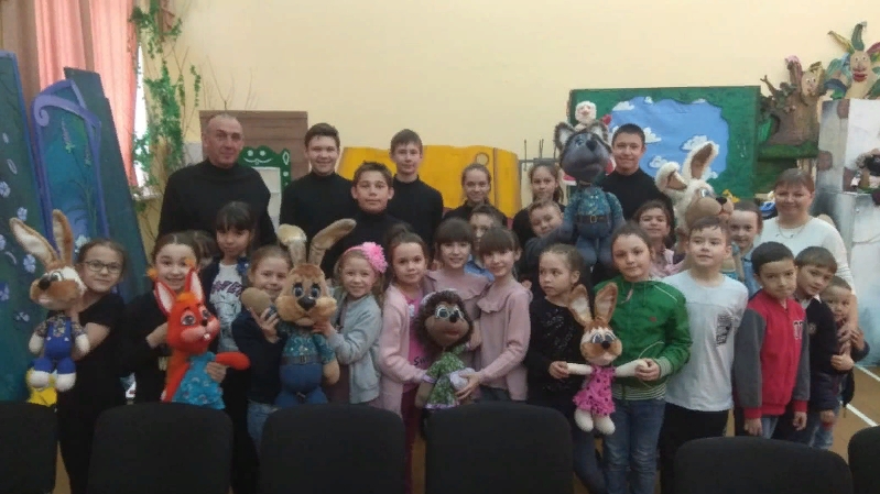 Алар “Дүрт дус” әкиятен карап, сәхнә арты тормышы белән таныштылар. Соңыннан бәйрәм түгәрәк өстәл артында дәвам итте.