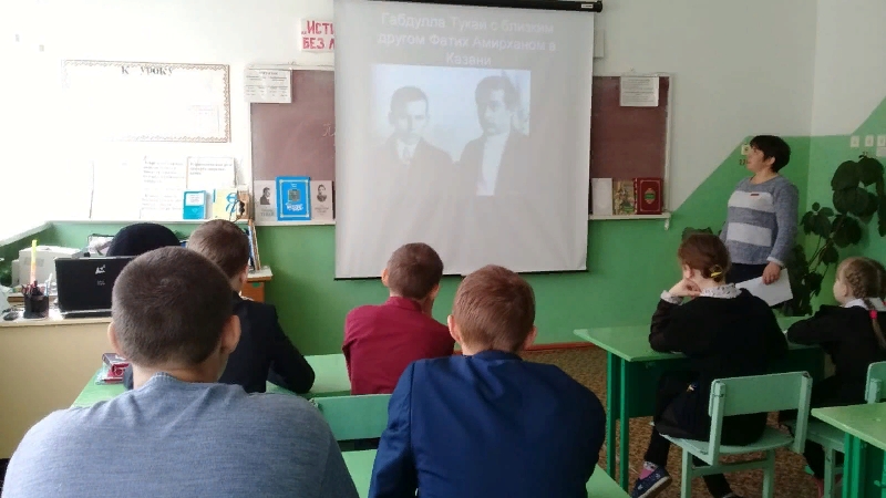 Татар әдәбиятын үстерү тарихына ул милли шигъриятнең нигезен салган һәм аның классик стилен тудырган бөек халык шагыйре буларак кергән. Чара барышында укучылар Габдулла Тукай тормышы һәм иҗаты белән таныштылар, шагыйрьнең шигырьләре яңгырады, балалар башкаруында «Туган тел» җыры башкарылды. Аннары викторина узды, анда балалар актив катнашты.