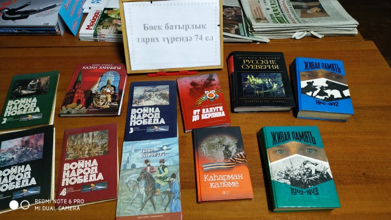 Бу бәйрәм 1941-1945 еллардагы Бөек Ватан сугышында фашистлар Германиясен җиңүне билгеләп үтү йөзеннән расланган. Әлеге датага багышлап Бөек Җиӊүнеӊ 74 еллыгы уңаеннан Урта Мишә авыл китапханәсендә «Бөек батырлык тарих турында 74 ел» дип исемләнгән китап күргәзмәсе куелды. Күргәзмәдә сугыш темасын яктырткан китаплар урын алды.