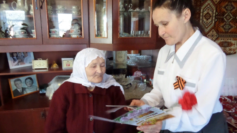 Югары Мәтәскә авыл клубы мәдәният хезмәткәрләре , 9 май-Бөек Жиңүнең 74 еллыгы уңаеннан тыл ветераны Борханетдинова Мөнәвәрә Шәйми кызының өендә булып, аңа бәйрәм күчтәнәче ,Теләче муниципаль районы башлыгы Зарипов Ильдус Фатих улының һәм Олы Мәтәскэ авыл җирлеге башлыгы Валиуллин Миннәхмәт Абдулла улының котлау открыткаларын тапшырганнар.