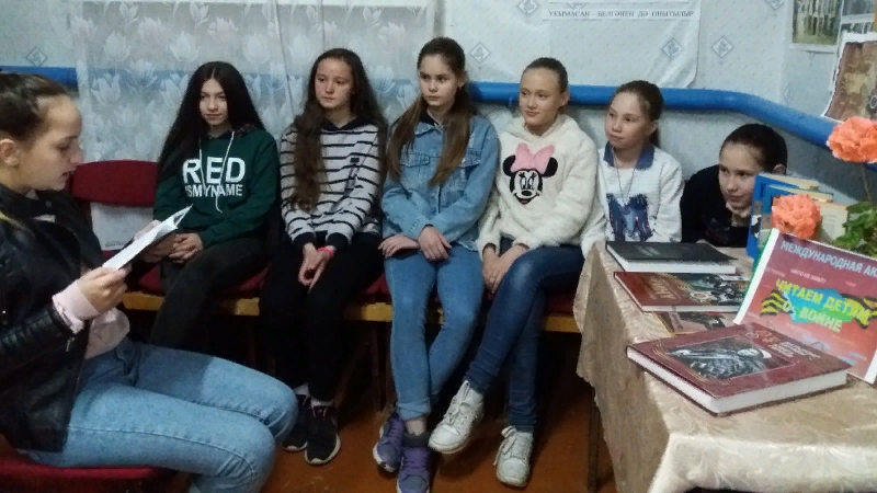 Язучыларның әсәрләрендә дә сугыш темасы тирәнтен яктыртылган. Утлы көннәрнең кайтавазы күңелләрдә саклансын өчен 6 май көнне Максабаш авыл китапханәсе #Читаем детям о войне 2019 исеме астында уздырылган Халыкара акциягә кушылды. Китап күргәзмәсе янында балаларга Бөек Ватан сугышын чагылдырган әсәрләрдән өзекләр укылды, балалар шулай ук үзләре дә китаплардан шигырьләрне сайлап алып иптәшләренә сәнгатле итеп кычкырып укып күрсәттеләр.
