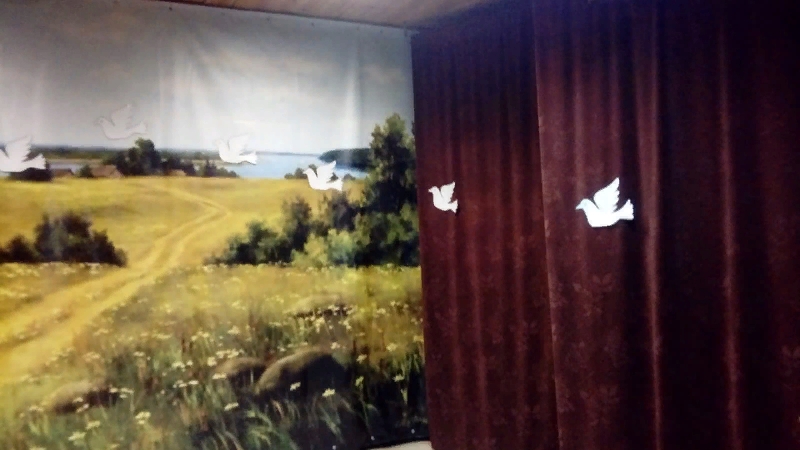 Балалар бөтен дөньяда дөньяга чакыру кебек игелекле ниятләр символы буларак, кәгазьдән ак күгәрченнәр ясадылар. Кәгазь күгәрченнәрдә акциядә катнашучылар үзләренең туганнарының һәм якыннарының исемнәрен яздылар һәм, әлбәттә, фашизмны җиңү яулаган сугышчыларны бер минутлык тынлык белән искә алдылар. Бу күгәрченнәр белән сәхнә бизәлде.