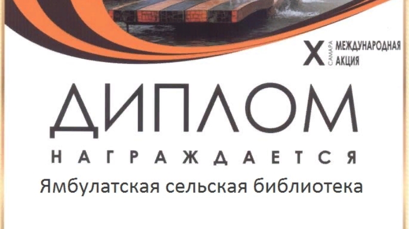 6 май көнне Ямбулат авылы китапханәсе 1941 - 1945 еллардагы Бөек Ватан сугышында Җиңү көненә карата "Балаларга сугыш турында укыйбыз" ( "Читаем детям о войне" ) дип исемләнгән X Халыкара акцияне үткәрүгә кушылды. Акциянең оештыручысы булып Татарстан Республикасының дәүләт бюджет мәдәният учреждениесе "Самара өлкә балалар китапханәсе" тора. Акциядә катнашканы өчен Ямбулат авылы китапханәсе диплом белән бүләкләнде.