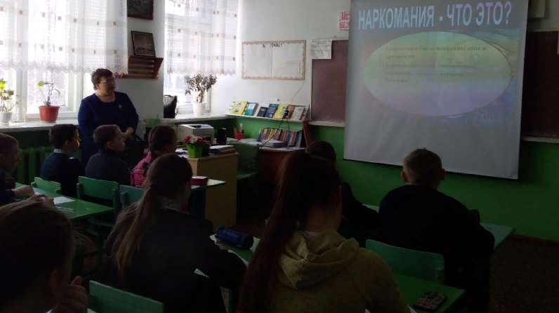 Безнең тарафтан, яшьләр физик һәм рухи сәламәтлеге өчен наркоманиянең тискәре нәтиҗәләрен яктыртучы папка рәсмиләштерелде. Укытучы-оештыручы Домолазова И. Ф. балаларга наркоманиянең бүгенге көндә иң куркыныч күренешләрнең берсе булуын сөйләде. Көн саен бу әшәкелеккә кешеләр күбрәк эләгә, көндәлек проблемалардан качарга тырыша. Россиядә наркоманнарның уртача яше елдан-ел яшәрә һәм бүгенге көндә 13-15 еллыкларны тәшкил итә. Һәм әлбәттә аларга наркотиклар белән бәйле теләсә нинди җинаять - эше булуын искәрттеләр.