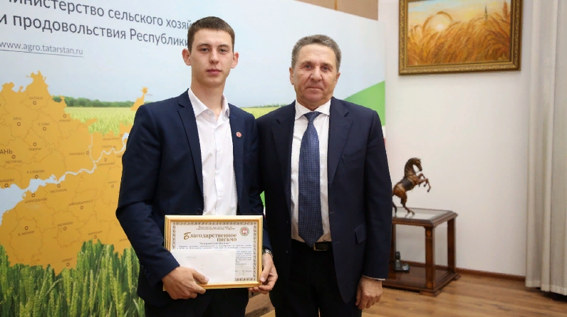 На церемонии чествования Азату Тимербаеву и Булату Халиуллину вручили Благодарственное письмо Министерства сельского хозяйства и продовольствия РТ и денежную премию.