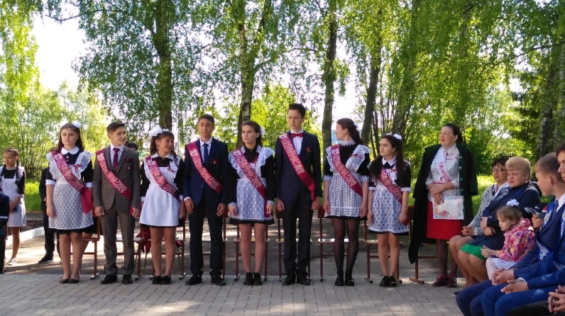 Язгы саф һавада, тантаналы линейка үткәрелде. Соңгы кыңгырауга багышланган тантаналы линейкада «Спорт мәктәбе” директоры Гыйнитятуллин Д.С., авыл җирлеге рәисе Гиниев Р.Г., ветеран укытучылар, укытучылар, ата-аналар, мәктәп укучылары. Мәктәп директоры Чернов П. А. чыгарылыш сыйныф укучыларына котлау сүзләре белән мөрәҗәгать итте.