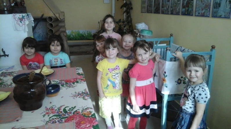 Балалар рәхәтләнеп тыңладылар, кызыклы экспонатлар белән таныштылар. Экскурсия балаларның «сөлгеләрне» бизәү буенча иҗади эше белән тәмамланды.