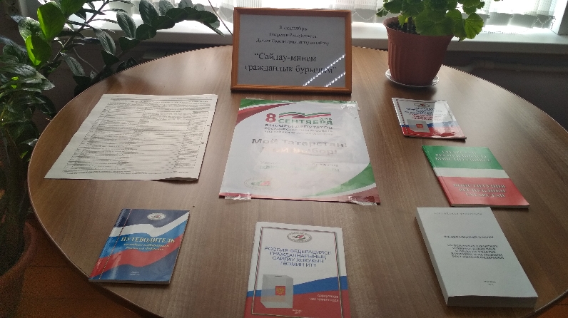 2019 елның 8 сентябрендә алтынчы чакырылыш Татарстан Республикасы Дәүләт Советына депутатлар сайлау узачак. Шул уңайдан Теләче җирлекара китапханәсенең уку залында «Сайлау - минем гражданлык бурычым» дип исемләнгән күргәзмә төзелде.