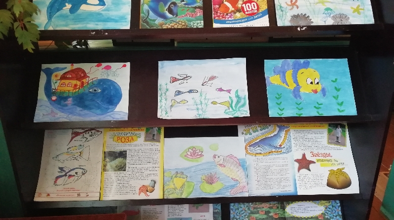 Диңгез темасына чаралар Шармыш авылы китапханәсендә даими рәвештә үткәрелә. Моллюск, медуз, балык, диңгез турындагы белемнәрне баету буенча даими эш алып барыла. Без язучыларыбыз - Т.Астафьевның «Дельфиннарда», А. Барто «Раковина», Лагздынь Ш.«Диңгез яры», Г. Косовның «Су асты дөньясы әлифбасы», С. Барановның “Дельфиннар” иҗаты белән таныштык. Өйрәнелгән материалны табышмакларны чишү, мәкальләр төзү ярдәмендә гомумиләштерделәр.