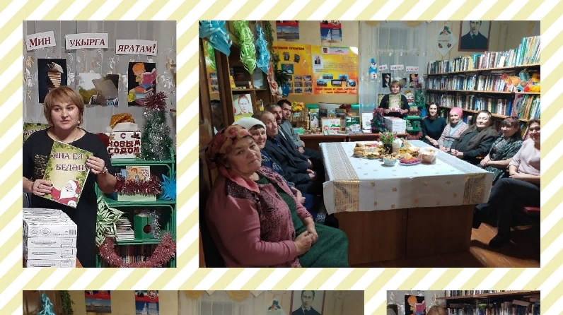 Бу чарага авылыбызның иң күп китап укучылары чакырылды. Алар белән әдәби викторина формасында уен оештырылды. Укылган китапларга анализ ясалды. Кар кызы килеп истәлекле бүләкләр тапшырды. Бәйрәмебез чәй табыны артында тәмамланды.