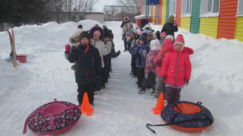 Буген Теләченең 2 нче балалар бакчасының мәктәпкә әзерлек төркеме балалары да саф һавада йөргән вакытта рәхәтләнеп үзләре ясаган таудан шудылар. Шулай ук "ватрушкалар" белән ике командага бүленеп, "Кем тизрәк?" уенында ярыштылар.
