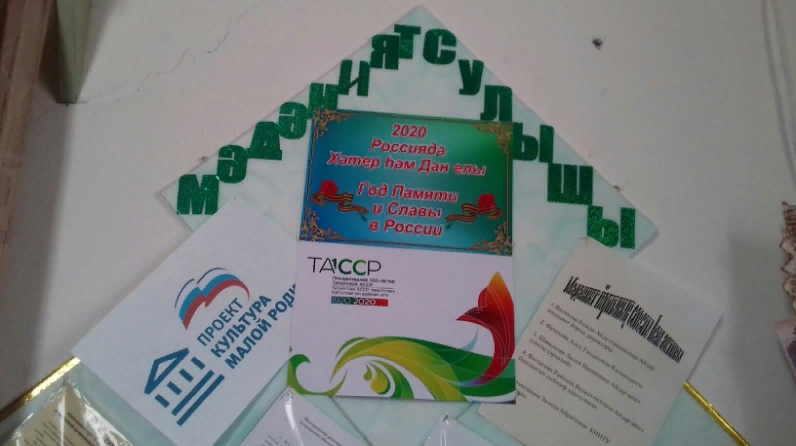 Айдар авыл мәдәният йортында ТАССРның 100 һәм Җиңунең 75 еллык юбилейлары уңаеннан "2020 Россиядә Хәтер һәм Дан елы" исемле стенд эшләнеп куелды.