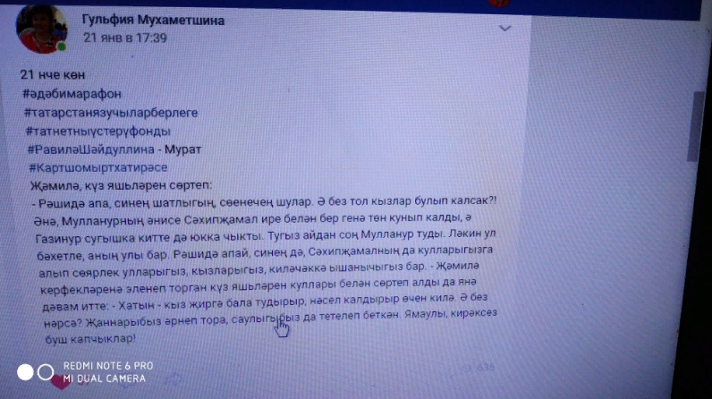 21 көн дәвамында һәр катнашучы көн саен китап укып, иң кызыклы, матур өзекләрне социаль челтәрдәге үз аккаунтында #әдәбимарафон хэштегы белән урнаштырып бара. Әлеге марафонда Урта Мишә авылы китапханәчесе Гөлфия Мухаметшина да катнашты.
