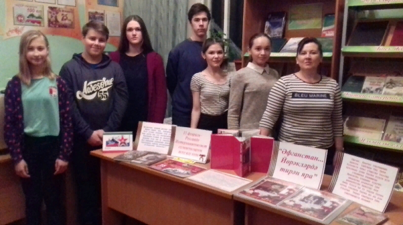 15 февраль көнне Айдар мәдәният йортында, китапханә белән берлектә, "Әфганстан...Йөрәкләрдә тирән яра " дип исемләнгән батырлык дәресен үткәрде. Сугыш темасы-мәңгелек авырту һәм төзәлмәслек яра.