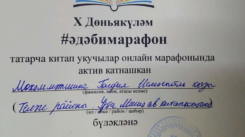 Урта Мишә авыл китапханәчесе Мөхәммәтшина Гөлфия Исмәгыйль кызы #әдәбимарафон дип аталган X нчы Бөтендөнья онлайн проектның финал өлешендә катнашып диплом белән бүләкләнде. Әлеге чара Казан шәһәренең "Пирамида" күңел ачу үзәгендә үтте.