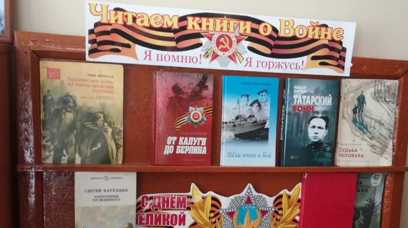 Сугыш, аның геройлары турындагы истәлекләрне саклап калырга безгә китаплар ярдәм итә. Яшь китап укучылар өчен сугыш турында Л.Кассиль «Твои защитники», С.П. Алексеев «Московская битва», Л. Пантелеев «Маринка», Г. Матвеев «Тайная схватка», К. Симонов «Малышка», Е. Ильина «Четвертая высота», В. Катаев «Сын полка» әдәбиятына күзәтү үткәрелде.