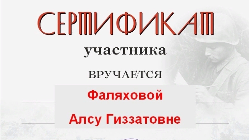 Айдар авыл китапханәсе А.С.Пушкин исемендәге үзәк дәүләт китапханәсе оештырган «Читать. Помнить. Чтить» дип исемләнгән виртуаль викторинада катнашып сертификатка ия булды.
