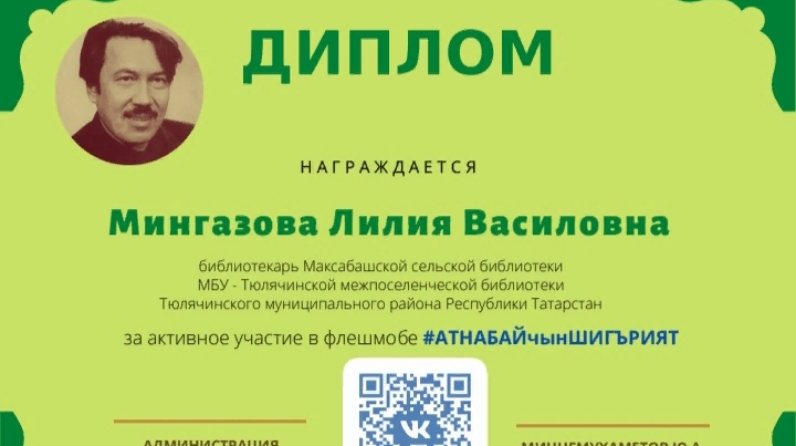 Шагыйрьнең туган көне уңаеннан социаль челтәрдә - “Әнгам Атнабаев - Башкортстанның халык шагыйре” группасында #АТНАБАЙчынШИГЪРИЯТ дип исемләнгән флешмоб бара. Әлеге флешмобта Максабаш авыл китапханәчесе Лилия Мингазова авторның “Кешегә нәрсә җитми ” шигырен укып дипломга лаек булды.