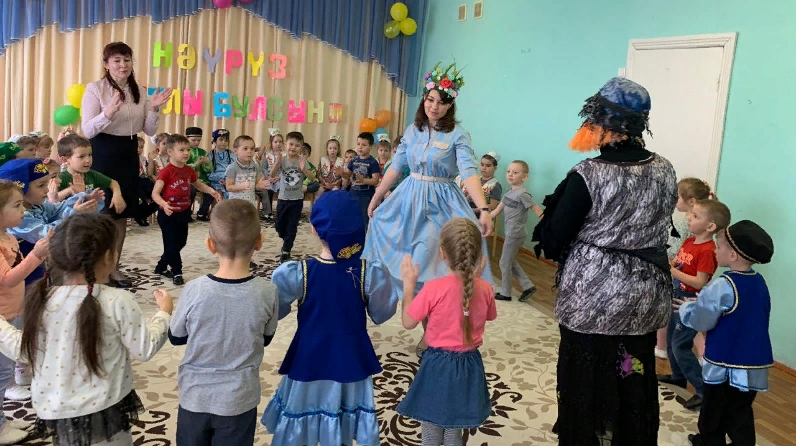Кар көртләре көләч язгы кояш нурларыннан юл кырыена ышыкланып калды. Алар инде элеккечә аклык белән күзне чагылдырмый, ә тыйнак кына гөрләвеккә әверелеп, кара туфракка урын биргән сыман, юкка чыгалар. Көннәр җылы, һавада хуш ис таралса да, яз тулы хокукы белән килергә ашыкмый. Бу хикмәтнең сере кая яшеренгәнлеген Теләченең беренче номерлы балалар бакчасына йөрүче нәниләр агымдагы елның Нәүруз бәйрәмендә белделәр. Кышны озату, язны каршылау бәйрәмен бакчага йөрүче балалар сөенеп көтеп алды. Шуңа да алар Яз патшабикәсен каршы алырга уйлап, залга җыелышты. Рәхәтләнеп уйнап туйганнан соң, ни курсенннәр, капкадан Яз түгел, ә Убырлы карчык күренде. Ул Нәүрүзбикәне качырган булып чыкты. Балалар аның төрле-төрле биремнәрен үтәп гүзәл Нәүрүзне коткардылар, аннан Яз кызы белән бергә «Түбәтәй», «Чума үрдәк, чума каз», «Йөзек салыш “ уеннарын уйнадылар, җырлар җырладылар, биеделәр. Бәйрәм күңелле узды, нәниләр дә дә бик сөенде.
