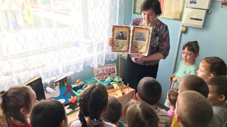 Нәниләр белән “Без тынычлык яклы” дип исемләнгән патриотик тәрбия сәгате уздырылды. Тәрбия сәгатенең максаты булып үсеп килүче буынга патриотик тәрбия бирү, балаларда үз авылыбызның каһарманнары белән горурлану, Бөек Ватан сугышы вакыйгалары белән кызыксыну, аларны өйрәнү теләге тора.
