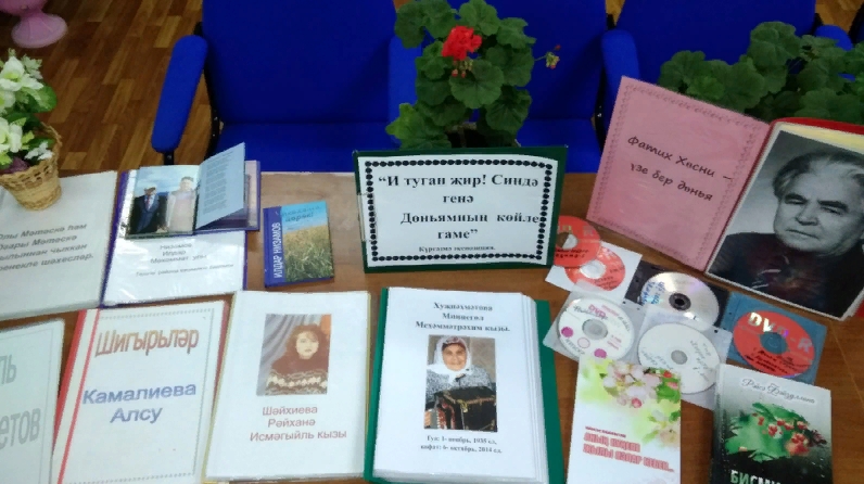 Шул шәхесләрне укучыларга таныту китапханәченең төп бурычы. Шул максатан һәм ТАССРның 100 еллыгына уңаеннан 19 март көнне Олы Мәтәскә авылы китапханәсендә күргәзмә - экспозиция эшләнде. Күргәзмә “И туган җир! Синдә генә дөньямның көйле гаме”дип исемләнде. Бу күргәзмәгә якташ язучыларның фотографияләре, аудио- язулары, китаплары һәм альбомнары куелды.
