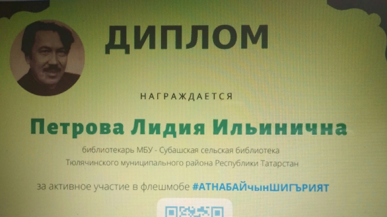 Шагыйрьнең туган көне уңаеннан социаль челтәрдә- “Әнгам Атнабаев - Башкортстанның халык шагыйре” группасында #АТНАБАЙчынШИГЪРИЯТ дип исемләнгән флешмоб бара. Әлеге флешмобта Субаш авыл китапханәчесе Петрова Лидия Илья кызы, авторның “Ышанасы килми” шигырен укып дипломга лаек булды.