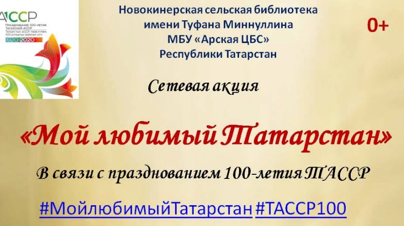 Күкчә авыл китапханәсе ТАССРның 100 еллыгы кысаларында «Арча үзәкләштерелгән китапханәләр системасы» муниципаль бюджет учреждениесенең Туфан Миңнуллин исемендәге Яңа Кенәр авыл китапханәсе үткәрә торган «Минем яраткан Татарстаным» акциясенә кушылды.