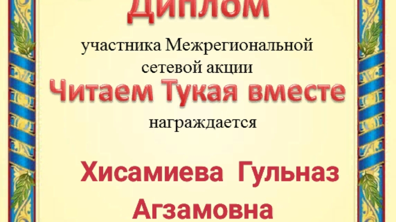 “Мой любимый Татарстан” дип исемләнгән челтәрле акцияләрдә катнашты һәм дипломнарга ия булды.