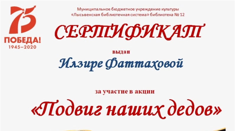 Акцияне оештыручы - Моховлянка авыл китапханәсе. Безнең укучыларыбыз Динә Шәйхетдинова һәм Илзирә Фәттахова бу акциядә катнашып, конкурска үз видеоларын тәкъдим иттеләр һәм катнашкан өчен сертификатларга ия булдылар.