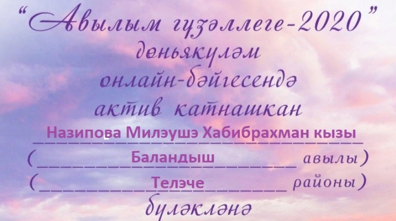 Бу проектта Баландыш авыл китапханэчесе Милэушэ Назипова да катнашты хэм Дипломга ия булды.