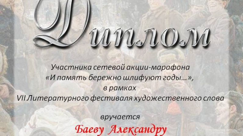 Әбде авылы китапханәсе укучылары Хәтер һәм Дан елына багышланган VII әдәби фестивале кысаларында «И память бережно шлифует годы...» дигән челтәрле акция-марафонда катнаштылар һәм Диплом белән бүләкләнделәр. Акциянең оештыручысы - Артемовск шәһәр округы ҮКСы 25 3 филиалы.