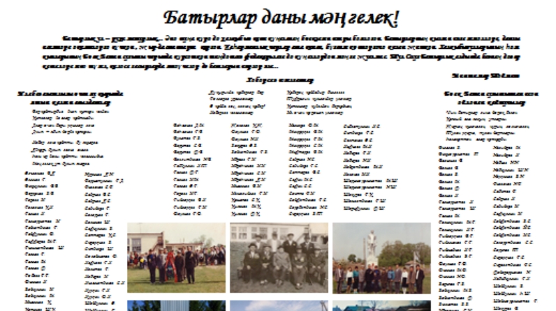 Бөек Ватан сугышы, аның аерым вакыйгалары һәм ул вакыйгаларда катнашкан, шуларның шаһиты булган кешеләр халык күңелендә мәңге калачак. Сауш авылы китапханәчесе Бөек Җиңүнең – 75 еллыгы уңаеннан “Батырлар даны – мәңгелек!” темасына стенд эшләде. Стендта Сауш авылыннан Бөек Ватан сугышына китүчеләр, илебез азатлыгы өчен яу кырында ятып калганнар, хәбәрсез югалганнар, Бөек Ватан сугышыннан исән – имин әйләнеп кайтучылар исемлекләре яктыртылды.