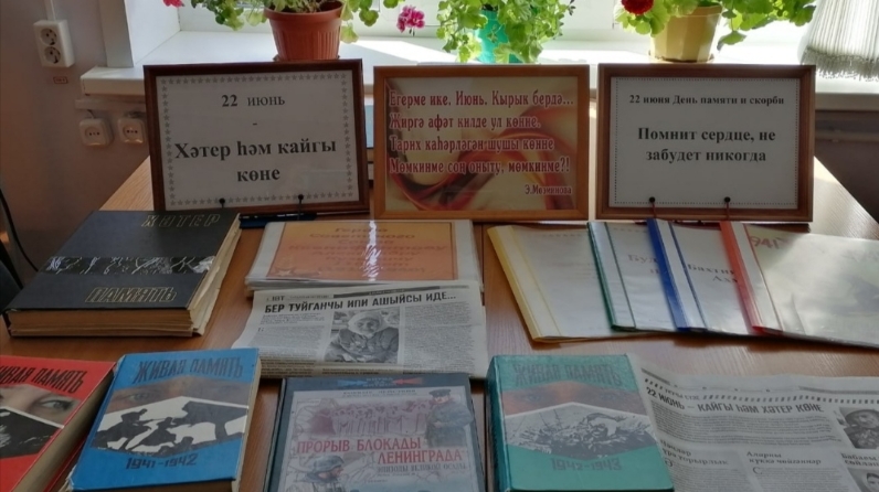 Теләче үзәк китапханәсендә Хәтер һәм кайгы көне уңаеннан “ Помнит сердце, не забудет никогда” дип исемләнгән китап күргәзмәсе оештырылды.