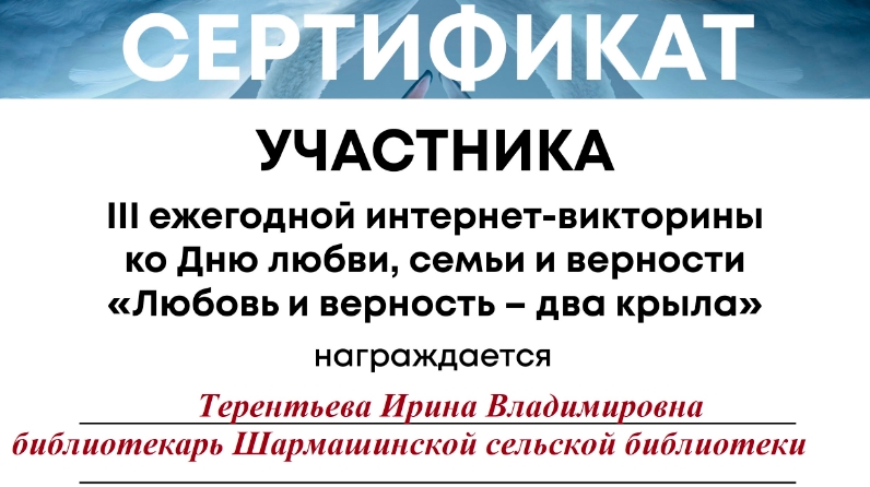 Шармыш авыл китапханәсе бу интернет-викторинага кушылды. Дөрес узган викторинада сертификат алдылар.