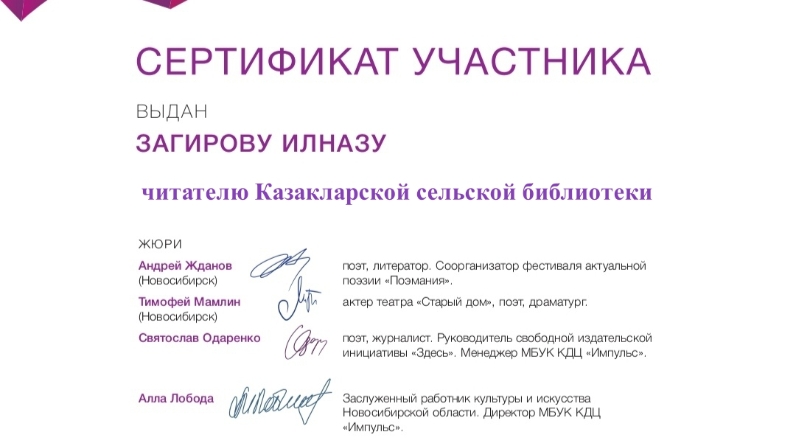 Казаклар авылы китапханәсе үзенең китап укучылары белән берлектә «Читаем Пушкина вместе» дип исемләнгән Х Халыкара акциядә катнашты, аны А.С. Пушкин исемендәге балалар һәм яшүсмерләр өчен өлкә китапханәсе (Саратов шәһәре) оештырды. Акция бөек шагыйрьнең туган көне уңыеннан үткәрелде һәм күп санда балаларны, яшүсмерләрне, яшьләрне рус классик әдәбиятын укуга җәлеп итүгә юнәлдерелде.