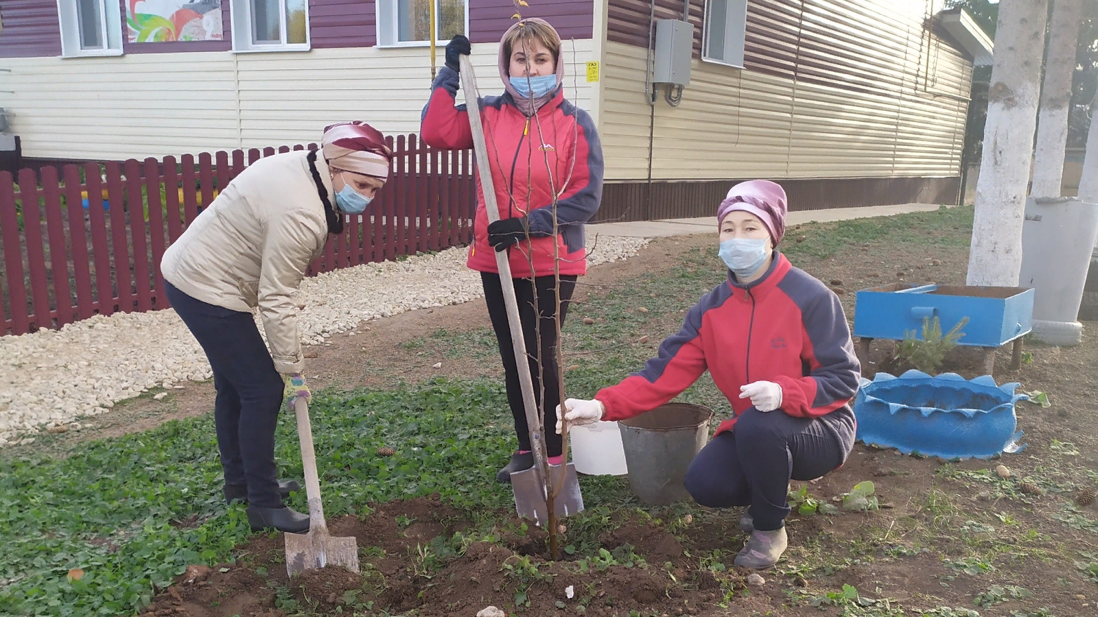 Баландыш мәдәният хезмәткәрләре 13 октябрь көнне "Үз агачыңны утырт" акциясенә кушылып мәдәният йорты территориясенә алмагач утырттылар.