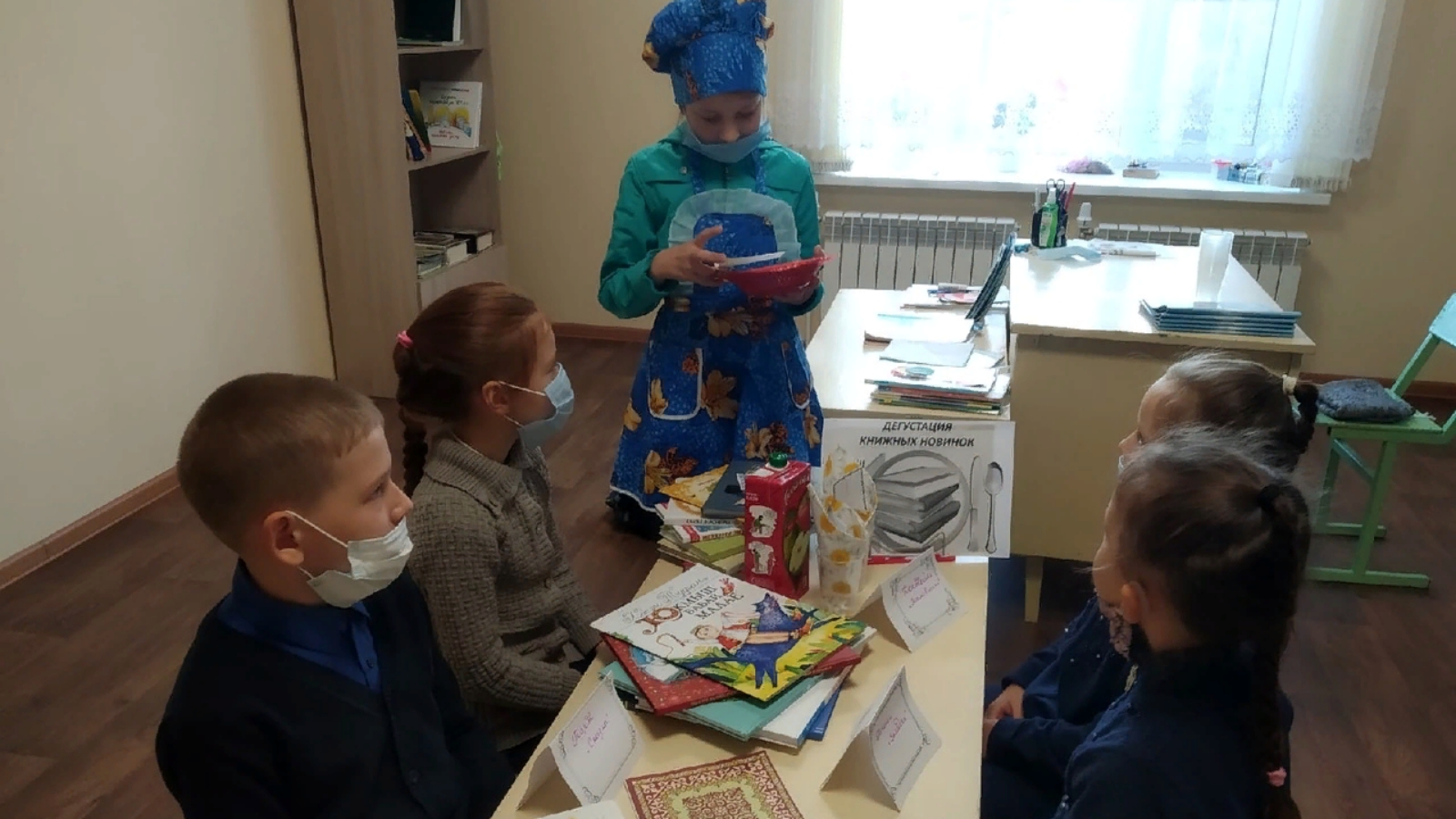 Ул укучыларны әдәби яңалыкларны татып карарга импровизацияләнгән әдәби кафега чакырды. Менюда «Табышмак» печеньесы, «Әкият» торты, «Мәкаль» коктейле булды. Балалар табышмаклар, мәкальләр чиштеләр, әкиятләр укыдылар. Барлык катнашучылар да тәмле укудан ләззәт алды.