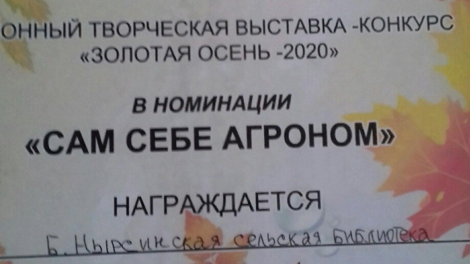 Олы Нырсы авыл китапханәсе «Природная мастерская» һәм «Сам себе агроном» номинацияләрендә 3 нче урынны яулады.