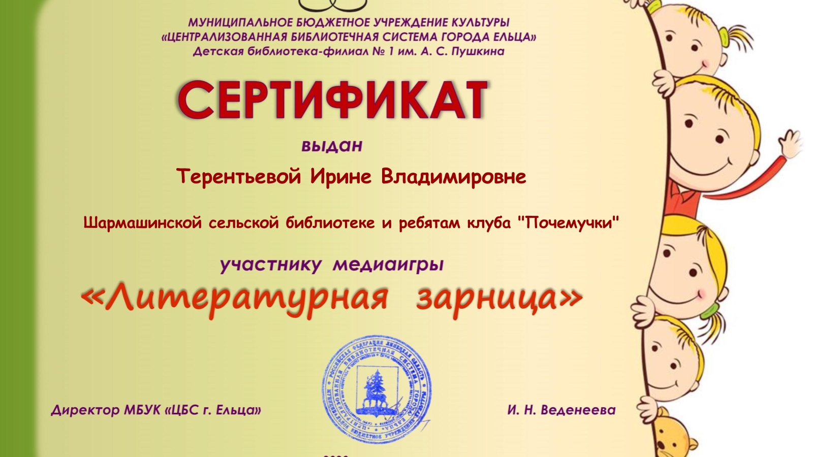 Әлеге уенда Шармыш авылы китапханәсенең “Почемучки” клубы балалары катнашты. Алар искиткеч әкиятләр буенча виртуаль сәяхәт кылып, уңай һәм тискәре геройларны искә алып, әлеге уенның барлык сорауларына да җавап бирде һәм сертификат белән бүләкләнде.