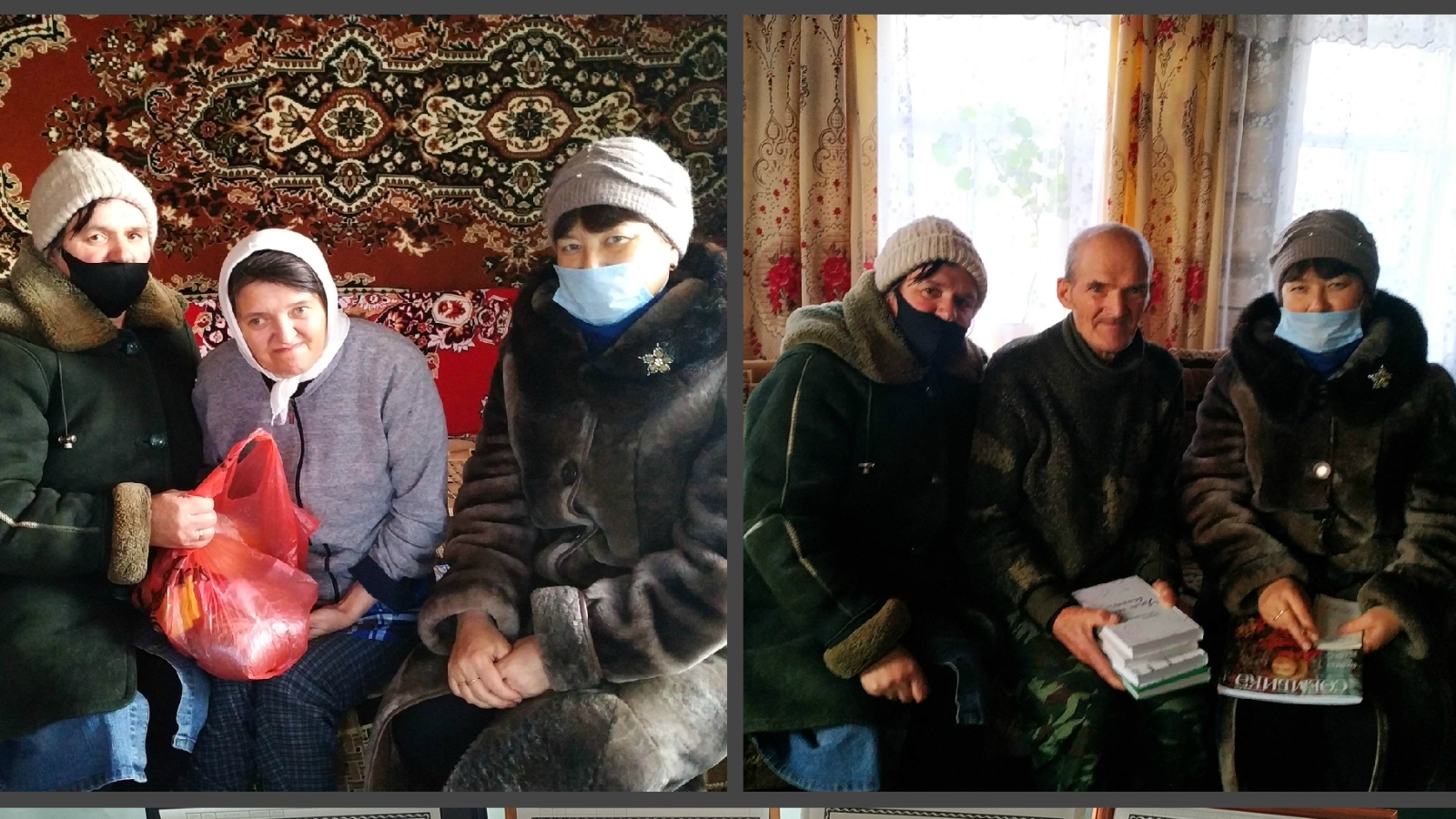 Хәлләрен белеп, район, авыл, мәдәният яңалыклары, китапханәгә кайтучы китаплар, журналлар белән таныштырдылар. Үз исемнәреннән күчтәнәч – пакет тапшырдылар. Китапханәдә инвалид язучыларның китапларыннан “Көчлелегең белән горурланма, кешелегең белән горурлан” исемле китап күргәзмәсе куелды.