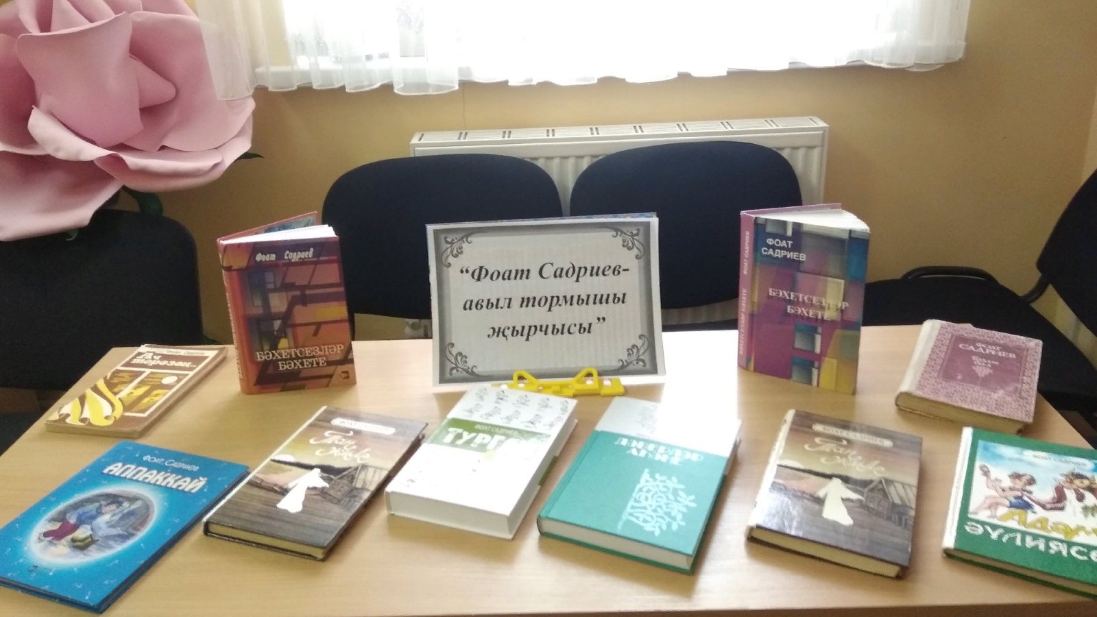 Туган телләр һәм халыклар бердәмлеге елы кысаларында Татарстанның халык язучысы, Габдулла Тукай исемендәге Дәүләт бүләге лауреаты Фоат Миңлеәхмәт улы Садриевка 80 яшь тулу уңаеннан Айдар авыл китапханәсендә 10-12 март көннәрендә "Ф.Садриев - авыл тормышы җырчысы" дип исемләнгән китап күргәзмәсе эшләде. Фоат Садриев гомере буе Мөслимдә яшәп, эшләп, шушы төбәкнең гап-гади хезмәт кешеләрен әсәрләренә кертеп зурлаган язучы. Күргәзмәдә язучының повесть һәм хикәяләре тупланган. Язучының әсәрләре тормышны тагын да мәгънәлерәк, яшәүне тагын да ямьлерәк, кадерлерәк итеп тоярга ярдәм итә.