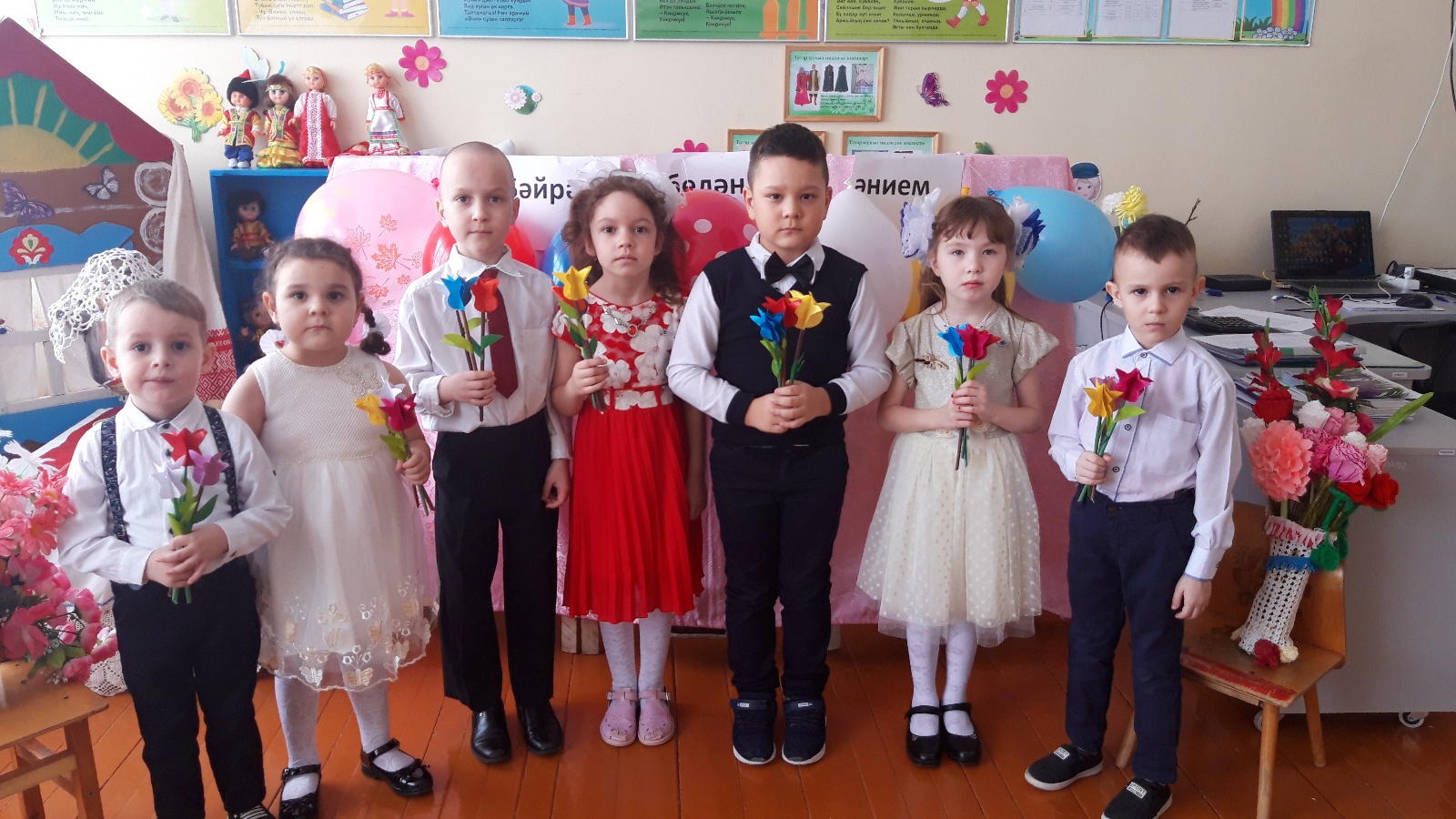 Бүген балалар бакчасында язның беренче бәйрәме 8 нче Мартка багышланган бәйрәм иртәсе булып үтте.Балалар үзләренең әниләрен, әбиләрен яз һәм әниләр турында шигырьләре,җырлары, биюләре белән шатландырдылар. Балалар әниләрен үз куллары белән ясаган чәчәк букетлары белән сөендерделәр.