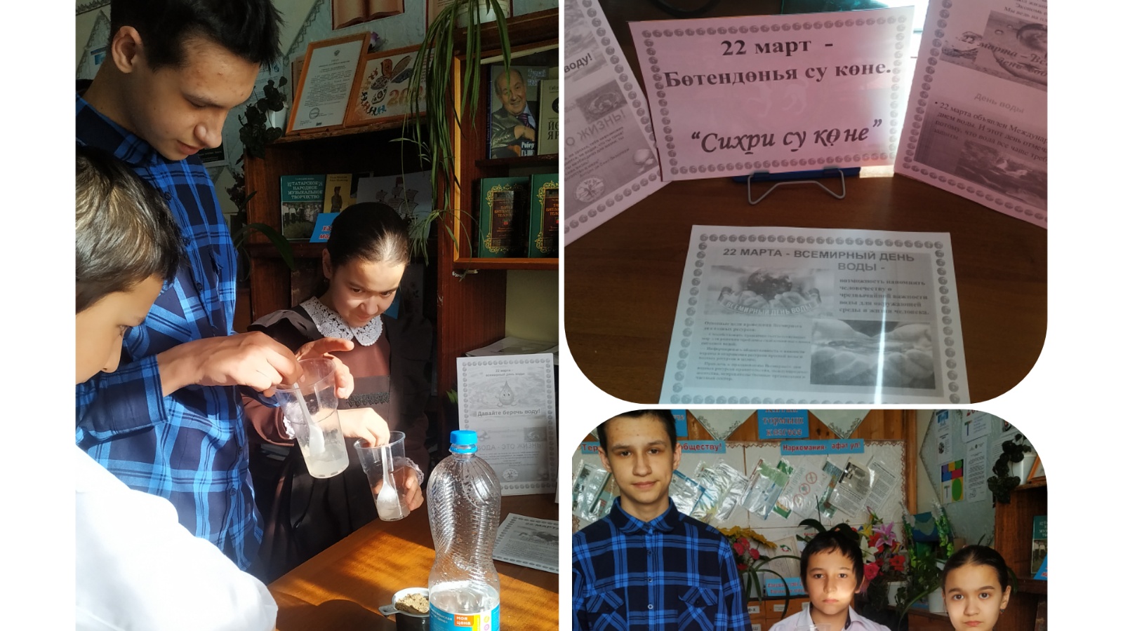 Су - безнең планетада иң күп таралган матдә. Су - үсемлекләр, хайваннар һәм кешеләр өчен яшәү чыганагы. Ә сулыклар - барлык тереклек өчен кирәкле суның саклану урыны ул. Судан башка кешеләр дә, хайваннар да яши алмый. Укучыларда су турындагы белемнәрне арттыру, суның әһәмиятен һәм кулланылышын күрсәтү, суга сакчыл караш тәрбияләү уңаеннан 19 март көнне Урта Мишә авыл китапханәсендә клуб белән берлектә “Сихри су көне” дип исемләнгән экологик сәгать үткәрелде. Укучылар бик борынгы заманнардан ук су иң кадерле һәм иң файдалы эчемлекләрдән саналганын һәм көчле энергиягә ия булуын белделәр. Су начарны да, яхшыны да үзенә сеңдерә. Шул исәптән катнашучыларга суга үзләренең яхшы теләкләрен белдерергә һәм аны эчәргә тәкъдим ителде.