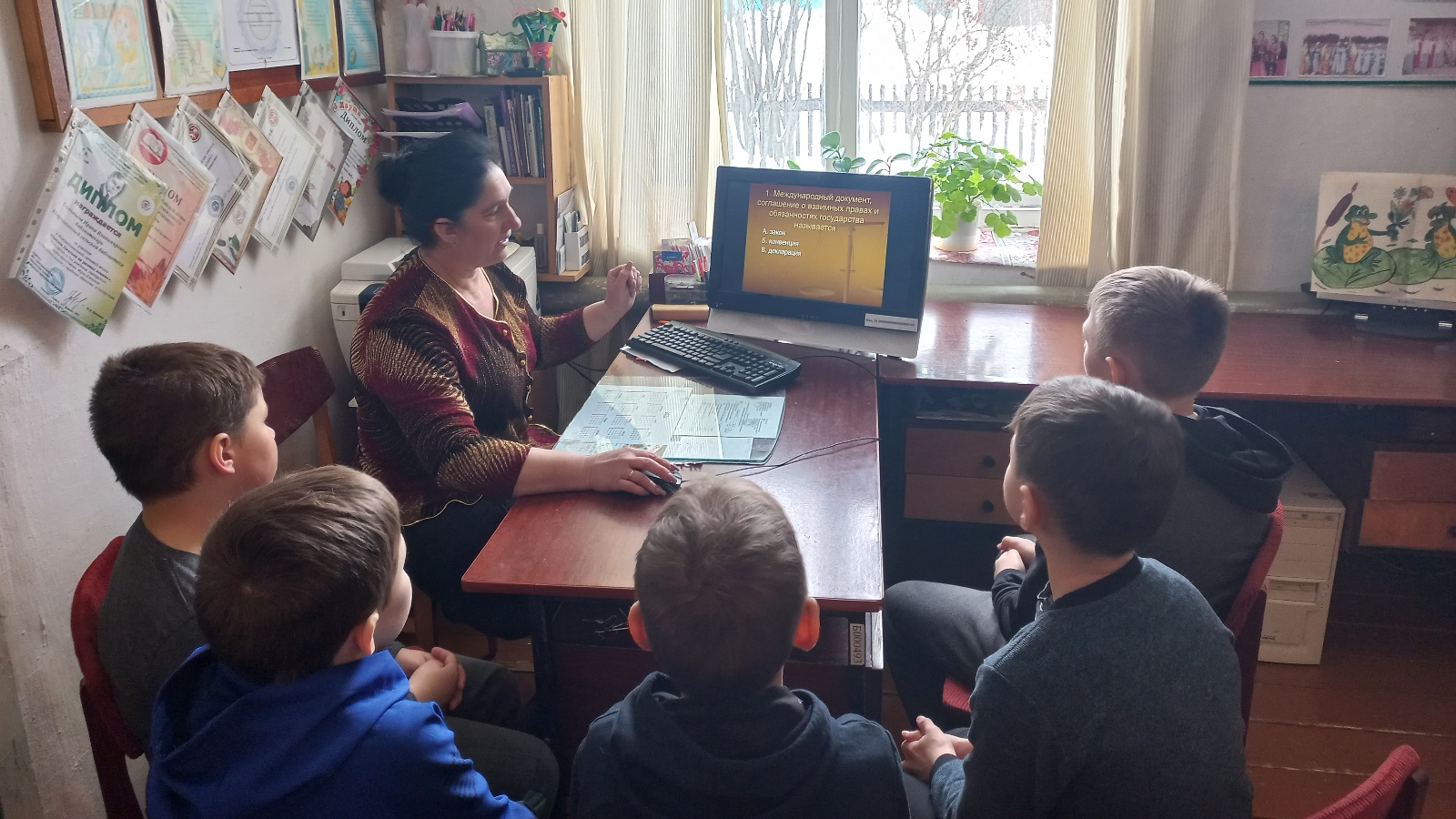 Бу очрашу балаларда ватан тарихына кызыксыну уятуга, хөрмәт һәм патриотизм хисе тәрбияләүгә юнәлтелгән. Балалар, интеллектуаль викторинада катнашып, Россия Конституциясе тарихы, дәүләт төзелеше, гражданнарның хокуклары һәм бурычлары турында мәгълүмат алдылар. Ахырда, очрашуга әзерләнгән тематик китап киштәсенә күзәтү ясалды.