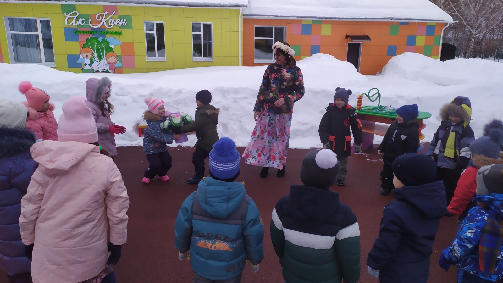 Нәүрүз бәйрәме яз башында елгалар ачылгач, көн белән төн тигезләшкән вакытта бәйрәм ителә. Бәйрәмгә кунак булып Нәүрүзбикә килде. Балалар аңа яз турында шигырьләр һәм җырлар башкардылар, татар халкының мәкальләрен искә төшерделәр, уеннар уйнадылар. Бәйрәм ахырында Карга боткасы белән сыйландылар.